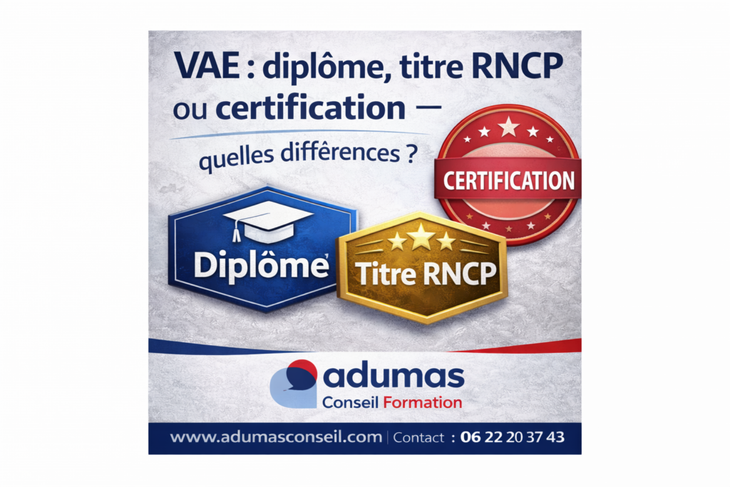 La Validation des Acquis de l’Expérience (VAE) permet d’obtenir un diplôme, un titre professionnel ou une certification sans repasser par une formation classique, en faisant reconnaître son expérience professionnelle.